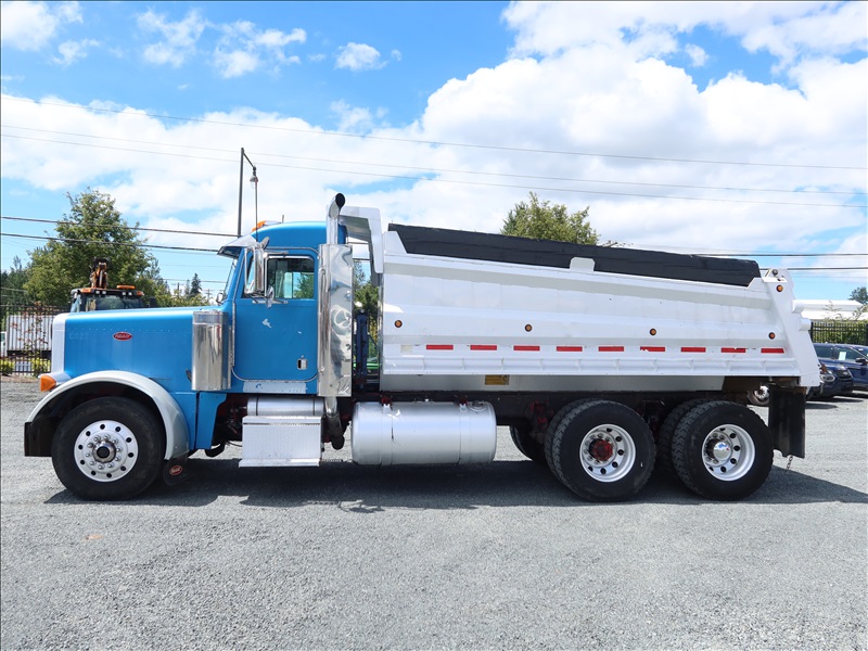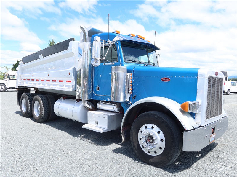 T/A, DUMP TRUCK, 15' ALUMINUM BOX, 430 HP DETROIT SERIES 60, 9 SPD, AIR SUSPENSION, 223" W/B, 12,000 LB FRONT, 34,000 LB REARS, A/B