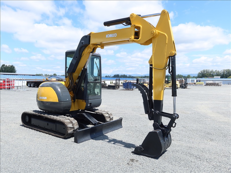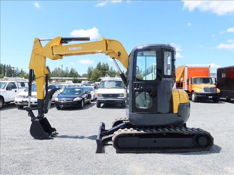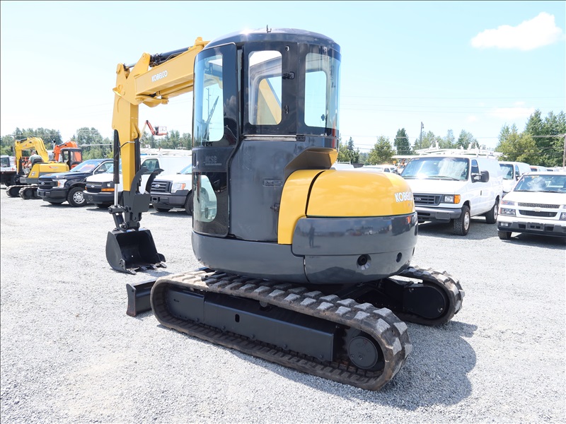 HYDRAULIC EXCAVATOR, 39.7 YANMAR 4TNE88-YB, OFFSET BOOM, 80" STICK, HYD THUMB, 23" BUCKET BLADE, RUBBER TRACKS, A/C CAB