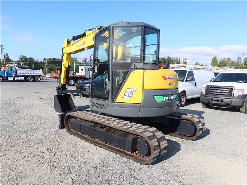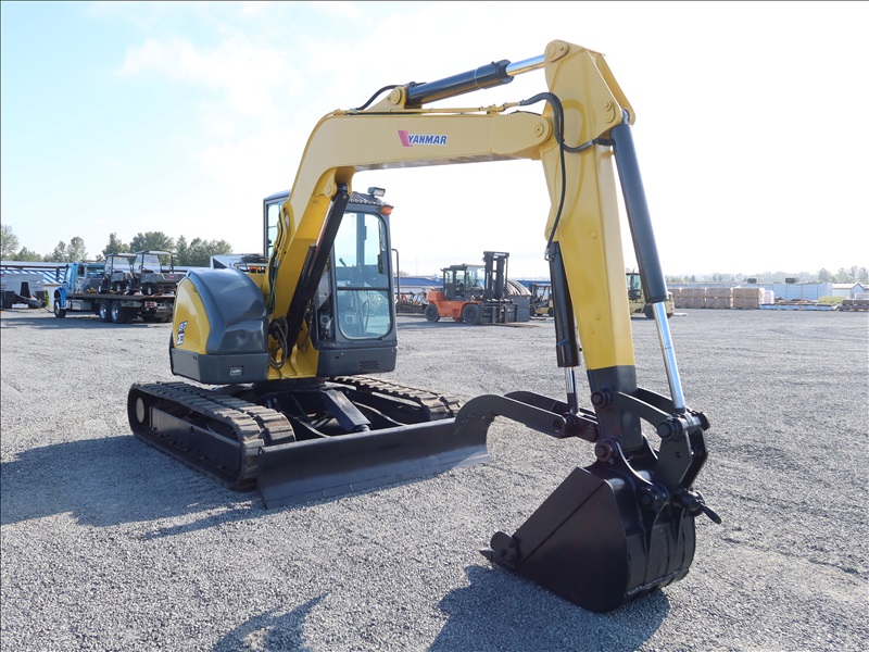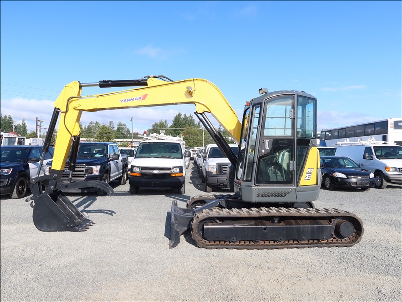 HYDRAULIC EXCAVATOR, YANMAR 4TNV98-EXB, 68" STICK, HYD THUMB, 22" BUCKET, BLADE, RUBBER TRACKS, A/C CAB