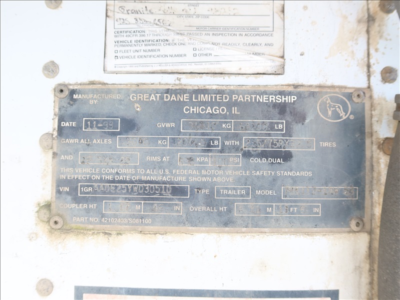 T/A, 52' REFRIGERATED VAN TRAILER W/CONTENTS, AIR SUSPENSION, SLIDING AXLES, CARRIER PHOENIX ULTRA REFER UNIT (WILL NOT START), AUX TANK, SWING DOORS, A/B, 11R22.5