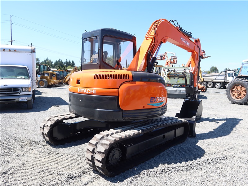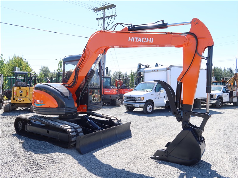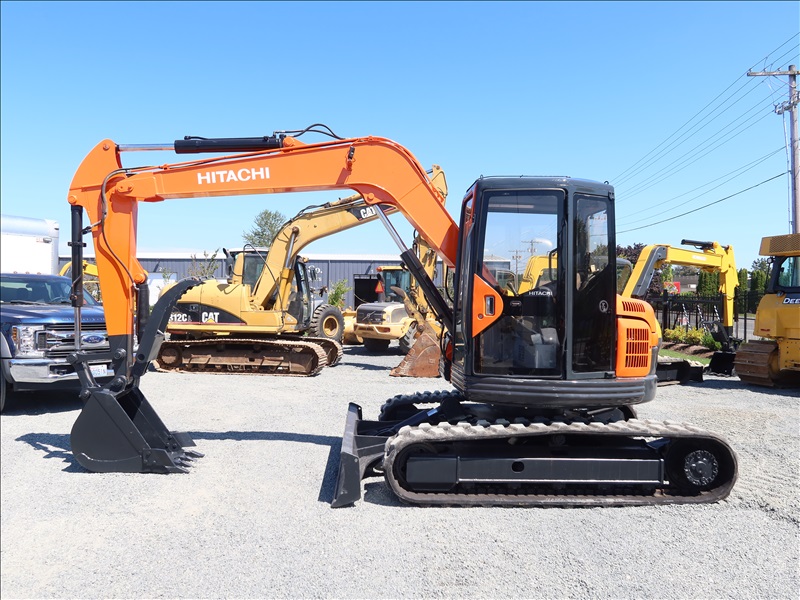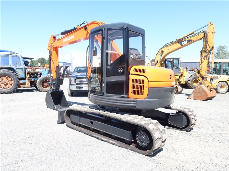HYDRAULIC EXCAVATOR, NISSAN 4 CYL DIESEL, 5'11" STICK, HYD THUMB, 23" BUCKET, BLADE, RUBBER TRACKS, A/C CAB