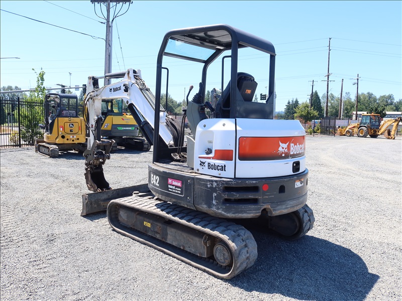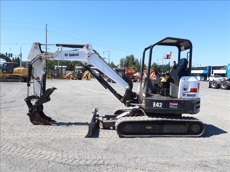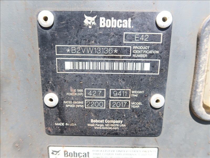 MINI EXCAVATOR, 42.7 HP 4 CYL DIESEL, SWING BOOM, HYD THUMB, PIN GRABBER, 10" BUCKET, AUX HYD, BLADE, RUBBER TRACKS, CANOPY