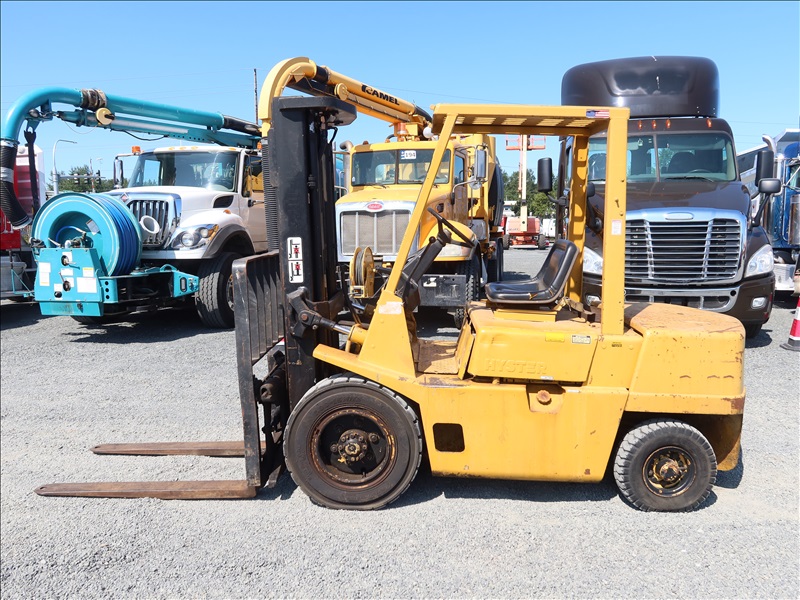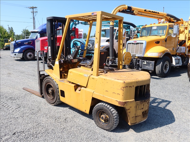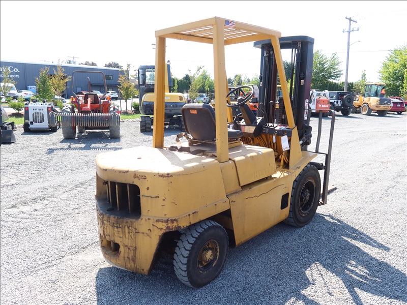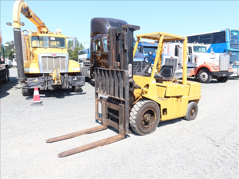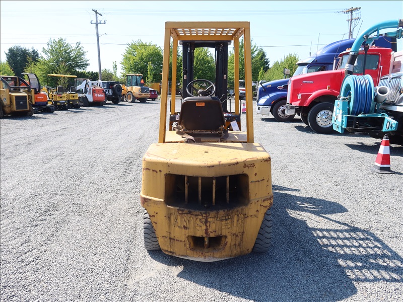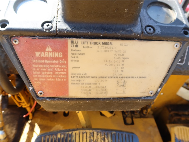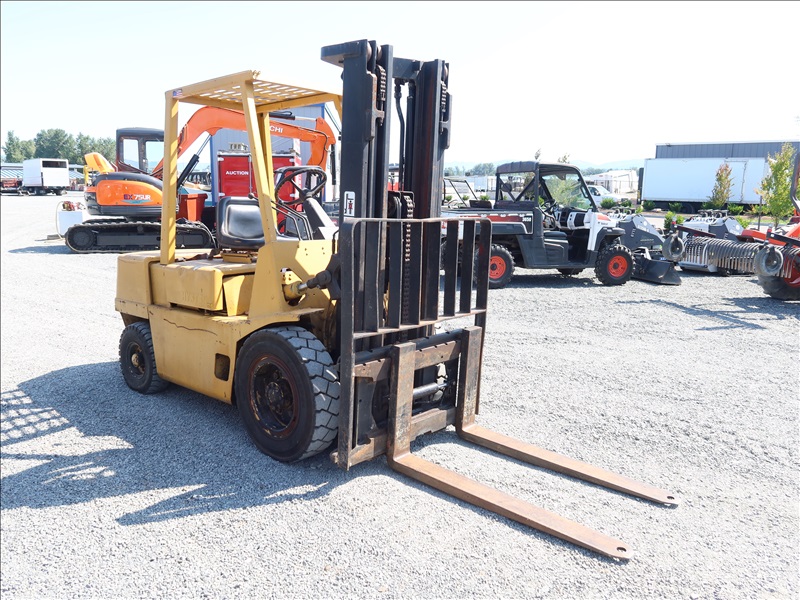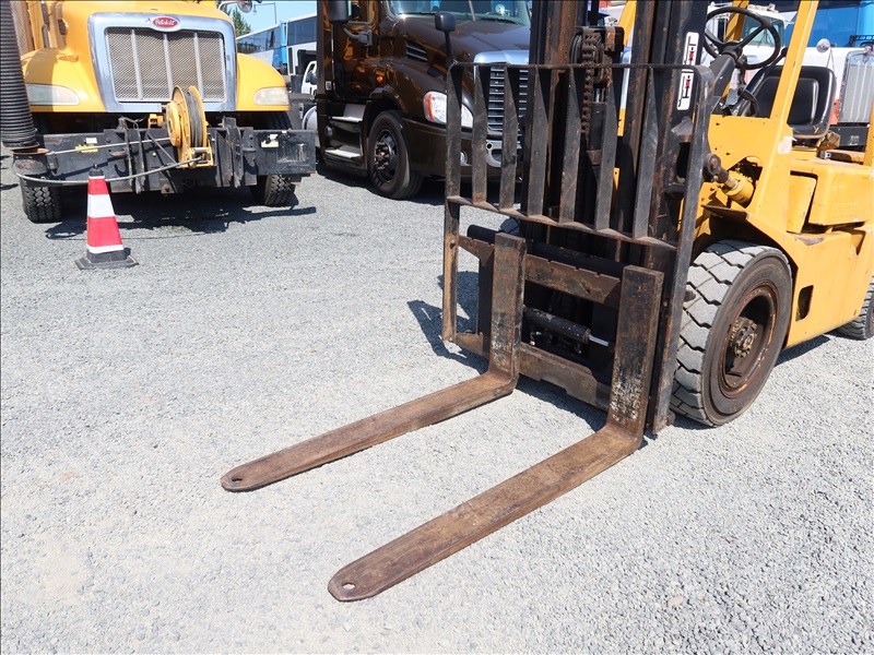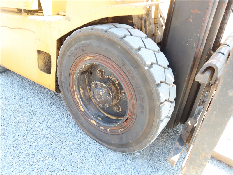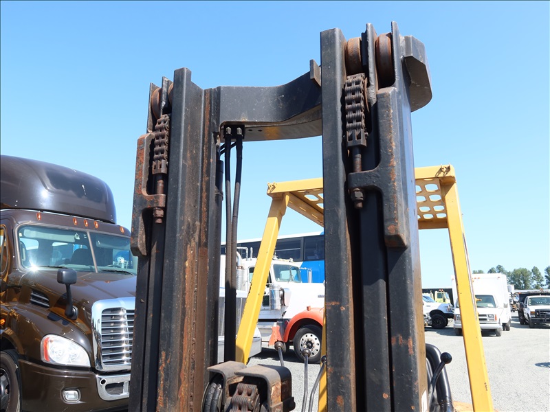 6,150 LB SOLID TIRE FORKLIFT, 177" FORK HEIGHT, 2-STAGE MAST, SIDE SHIFT, ISUZU 4 CYL DIESEL