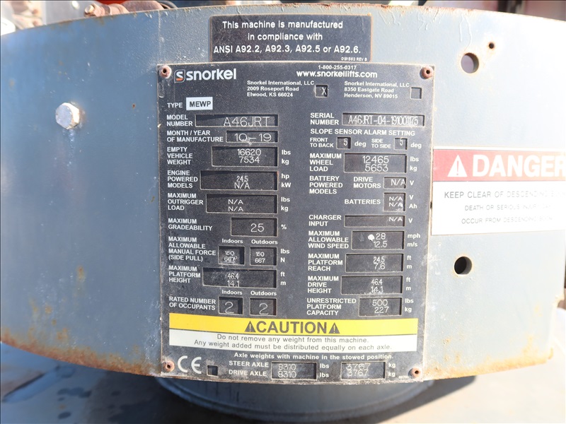 2019 SNORKEL A46JRT ARTICULATED BOOM LIFT