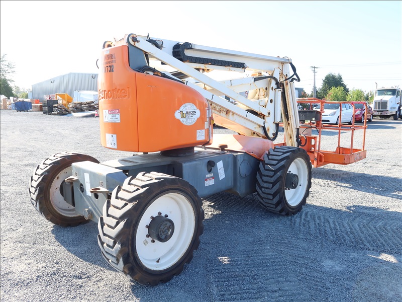 4WD ARTICULATED BOOM LIFT, 46' PLATFORM HEIGHT, 24.5' HORIZONTAL REACH, 500 LB CAPACITY, A/C RECEPTACLE AT PLATFORM, KUBOTA V1505
