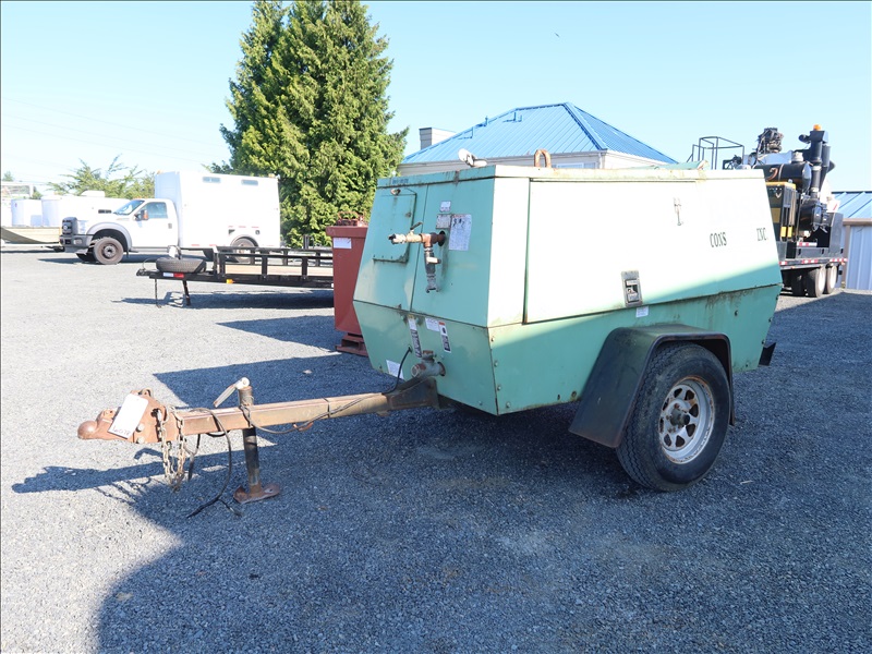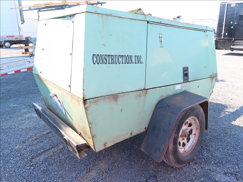 S/A, 185 CFM, 100 PSI TRAILER MOUNTED AIR COMPRESSOR, SPRING SUSPENSION, JOHN DEERE 85 HP DIESEL, 205/75D15, HOUR METER READS: 3,138