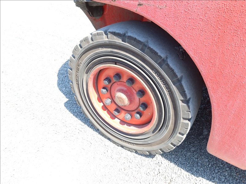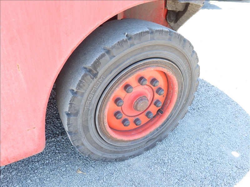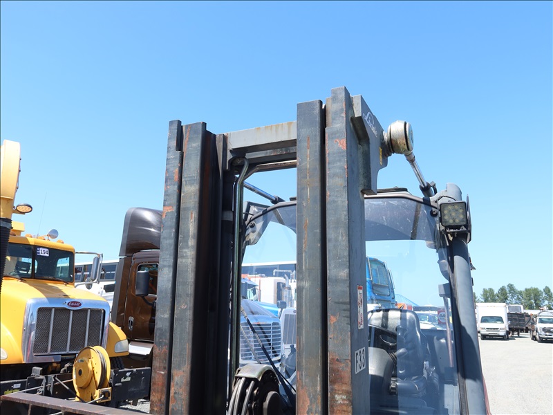 8,830 LB DUAL SOLID TIRE FORKLIFT, 178" FORK HEIGHT, 2-STAGE MAST, SIDE SHIFT, FORK POSITIONERS, LUMBER FORKS, ACCUMULATOR