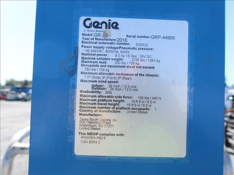 TELESCOPIC MAST LIFT, 19' PLATFORM HEIGHT, 350 LB CAPACITY, A/C RECEPTACLE AT PLATFORM