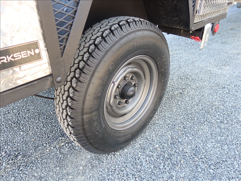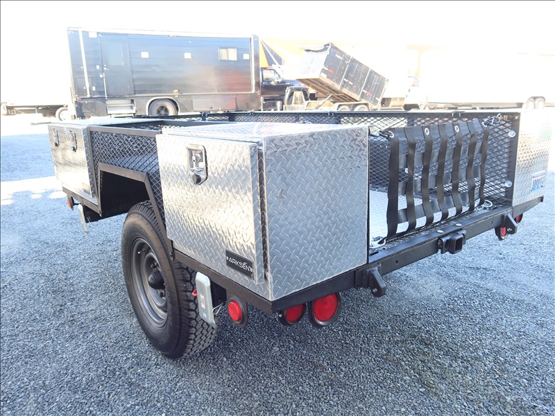 S/A, 8' X 6' UTILITY TRAILER, PINTLE HITCH, 7 PIN, STABILIZER JACKS, E TRACK SYSTEM, ALUMINUM TRUCK BOXES W/KEYS, 2" RECEIVER HITCH (REAR), SPRING & GAS STRUT SUSPENSION, SURGER BRAKES, 235/85R16