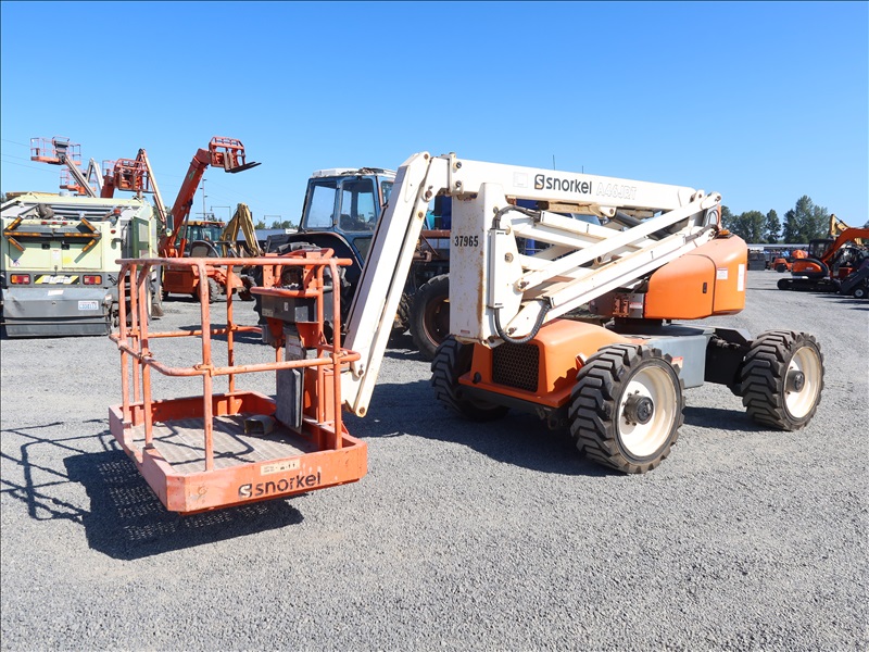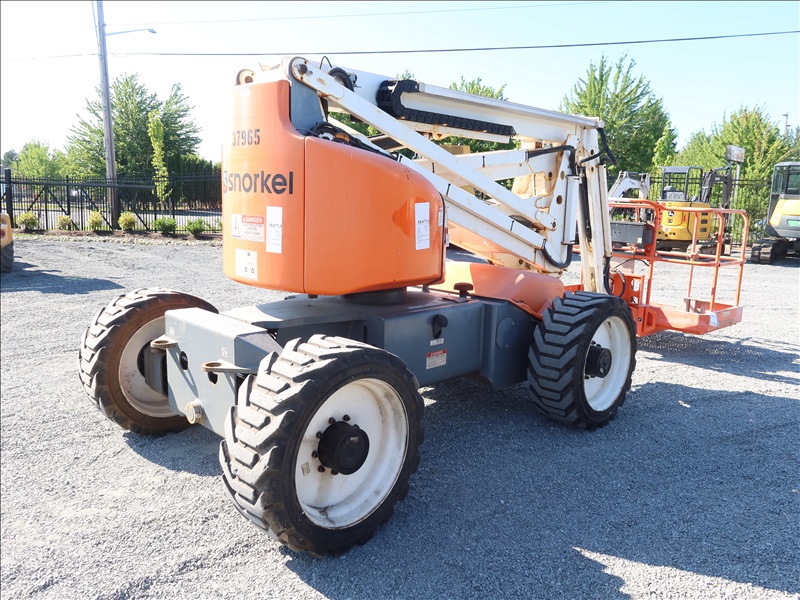 4WD ARTICULATED BOOM LIFT, 46.4' PLATFORM HEIGHT, 24.5' HORIZONTAL REACH, 500 LB CAPACITY, A/C RECEPTACLE AT PLATFORM, KUBOTA V1505