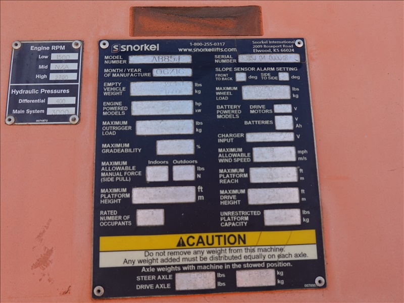 4X4 ARTICULATED BOOM LIFT, 84.6' PLATFORM HEIGHT, 61.11 HORIZONTAL REACH, 500 LB CAPACITY, A/C RECEPTACLE AT PLATFORM, KUBOTA V2403T