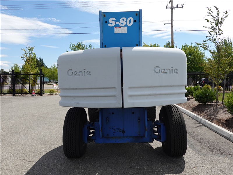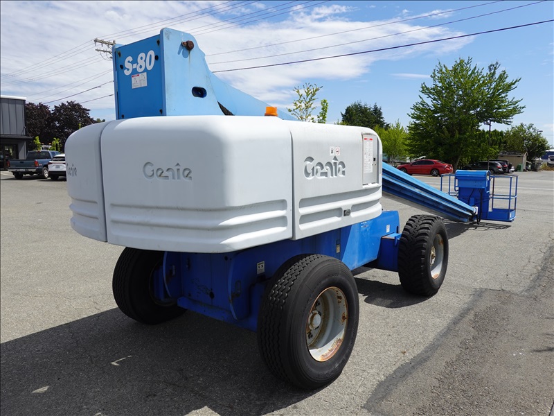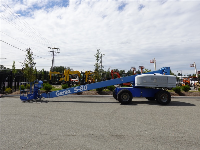 2WD TELESCOPIC BOOM LIFT, 80' PLATFORM HEIGHT, 71' HORIZONTAL REACH, 500 LB CAPACITY, A/C RECEPTACLE AT PLATFORM, FORD 4 CYL LPG