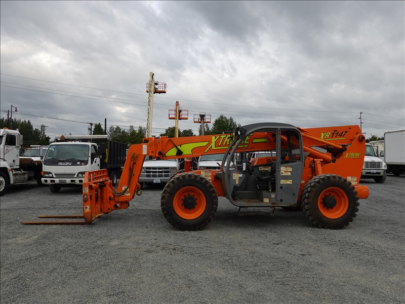 4X4X4 11,000 LB TELESCOPIC FORKLIFT, 47' LIFT HEIGHT, 3-SECTION BOOM, AUX HYD, SWING CARRIAGE, 74 HP CUMMINS 3.8L, 15.5X25