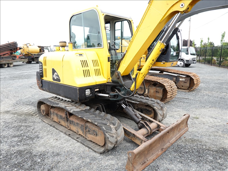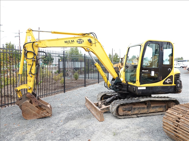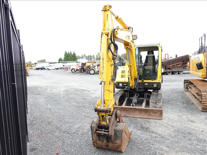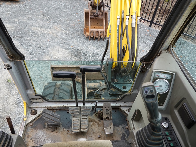 MINI EXCAVATOR, 53 HP YANMAR 4TNV94L, SWING BOOM, QC 23" BUCKET, HYD THUMB, AUX HYD, BLADE, RUBBER TRACKS, A/C CAB (MISSING FRONT GLASS)