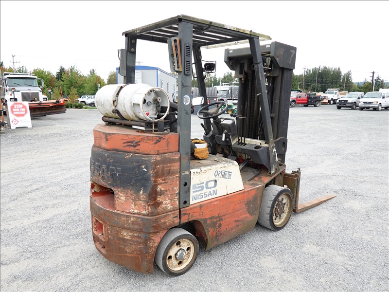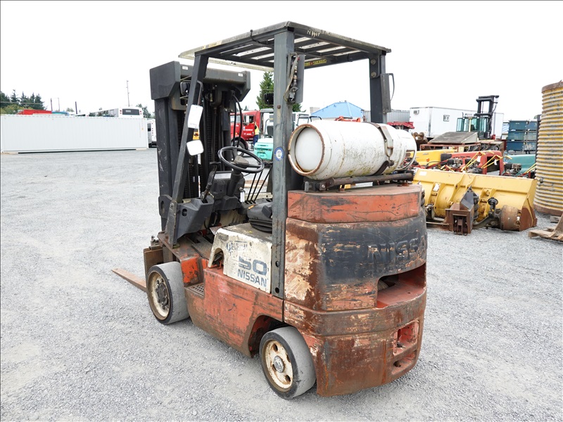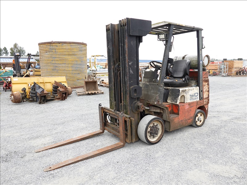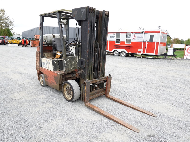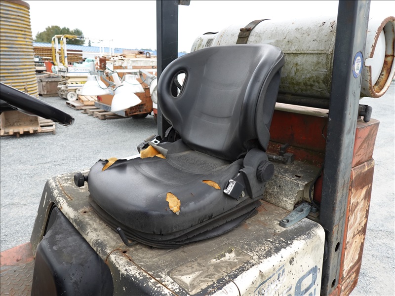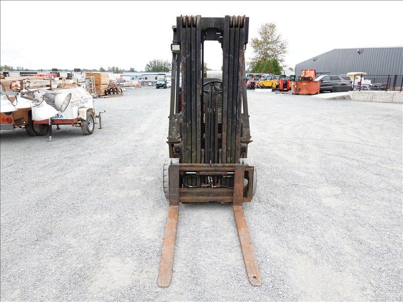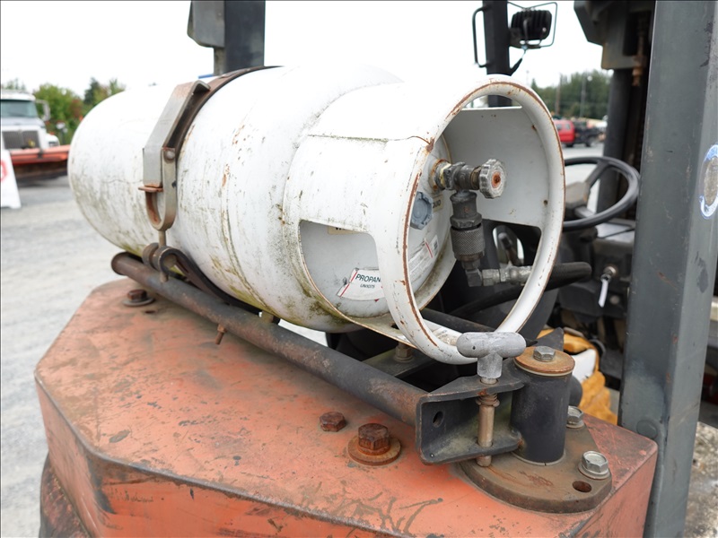 SOLID TIRE FORKLIFT, 3-STAGE MAST, SIDESHIFT, LPG (SERIAL NUMBER DATA PLATE DAMAGED, S/N NOT LEGIBLE)