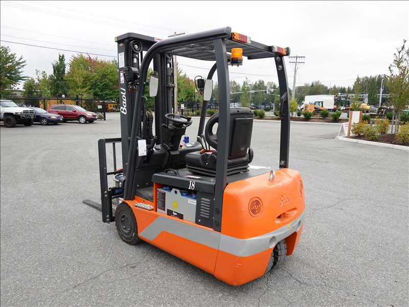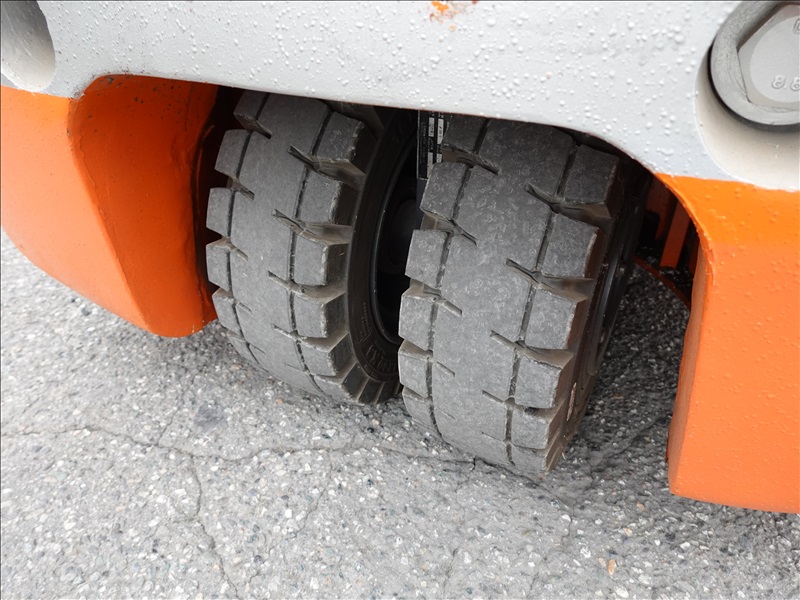 3,260 LB ELECTRIC SOLID AIR TIRE FORKLIFT, 161" FORK HEIGHT, 3-STAGE MAST, SIDE SHIFT, CHARGER