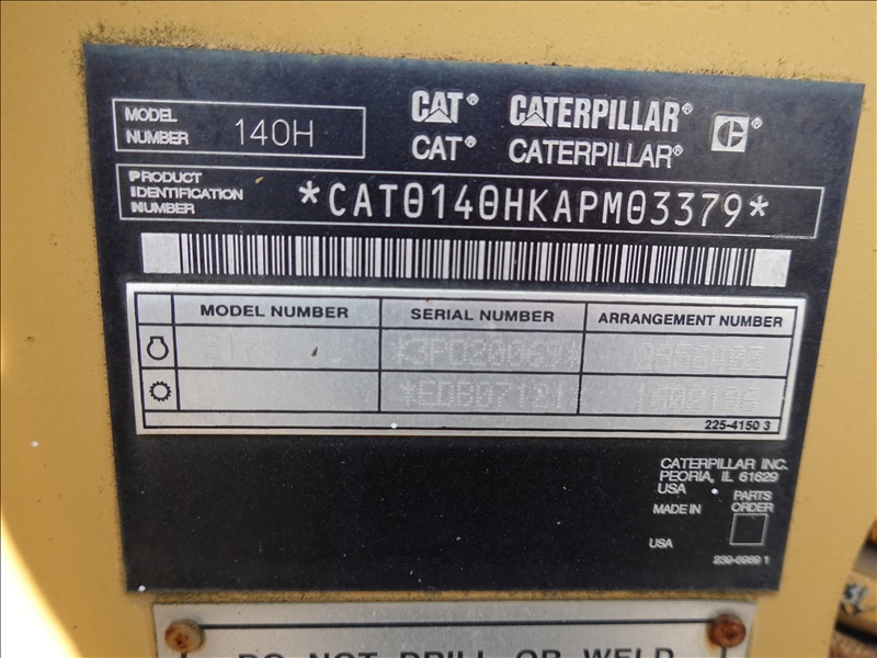 MOTOR GRADER, PUSH BLOCK, 14' MOLD BOARD, MULTI-SHANK RIPPER, ACCUMULATORS, 185 HP 3176 DITAC VHP, 8F/6R, A/C CAB, REAR CAMERA, 1HE4.00R24TG