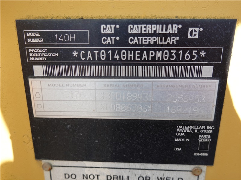 MOTOR GRADER, PUSH BLOCK, 14' MOLD BOARD, MULTI-SHANK RIPPER, ACCUMULATORS, 185 HP 3176 DITAC VHP, 8F/6R, A/C CAB, 14.00R24TG