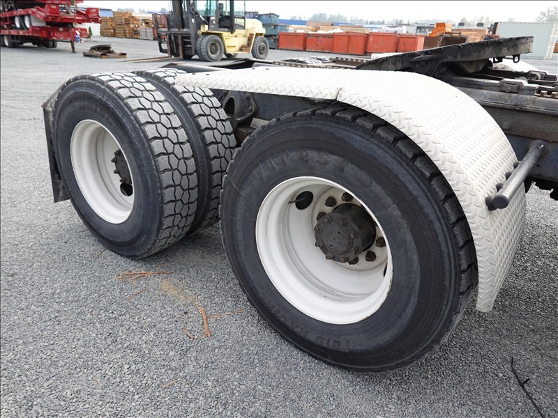 T/A, DAY CAB, TRACTOR, 460 HP CUMMINS N14, 18 SPD, SPRING BEAM SUSPENSION, 215" W/B, 12,000 LB FRONT, 23,000 LB REARS, DROP AXLE, WET KIT, A/B