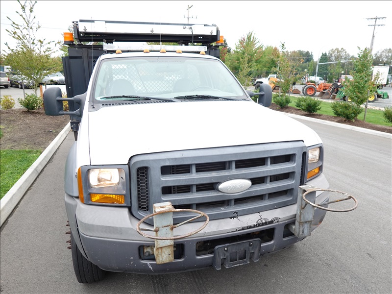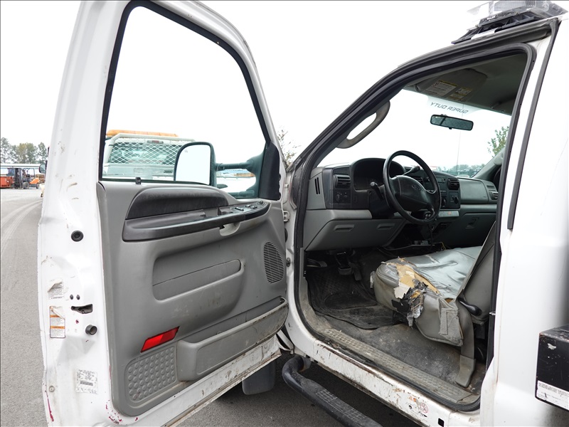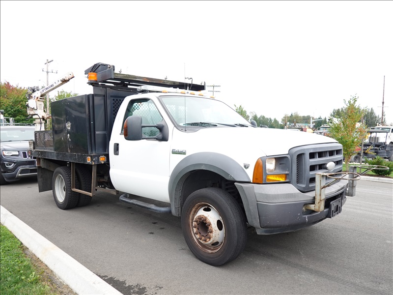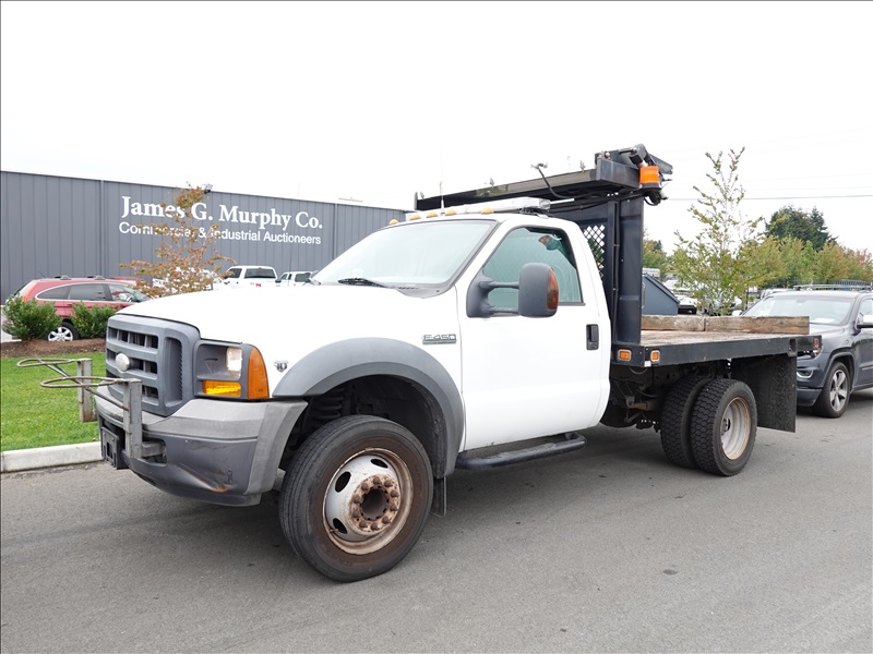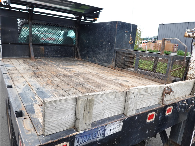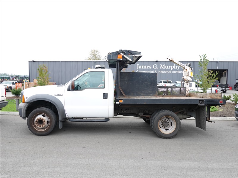 10' FLATBED, FORD V10, AUTO, LIFTMOORE CRANE, OVERHEAD SIGN BOARD