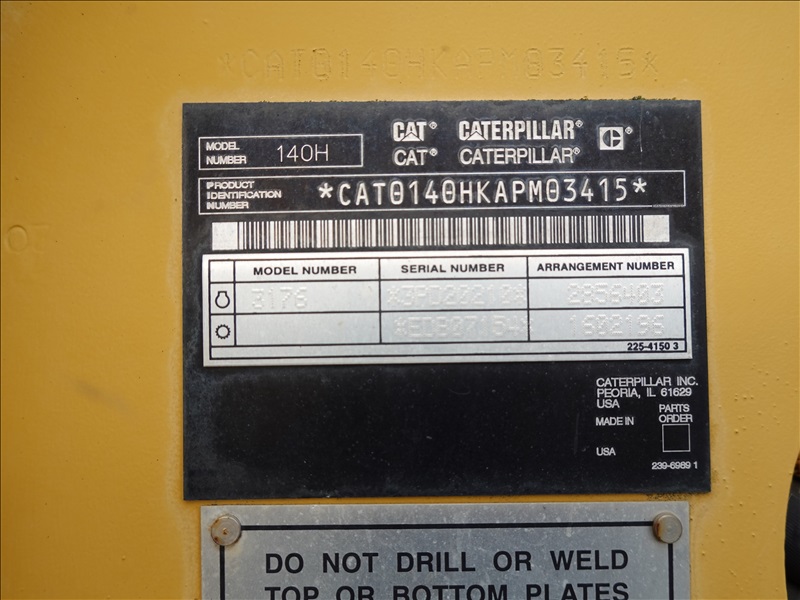 MOTOR GRADER, PUSH BLOCK, 14' MOLD BOARD, MULTI-SHANK RIPPER, ACCUMULATORS, 185 HP 3176 DITAC VHP, 8F/6R, A/C CAB