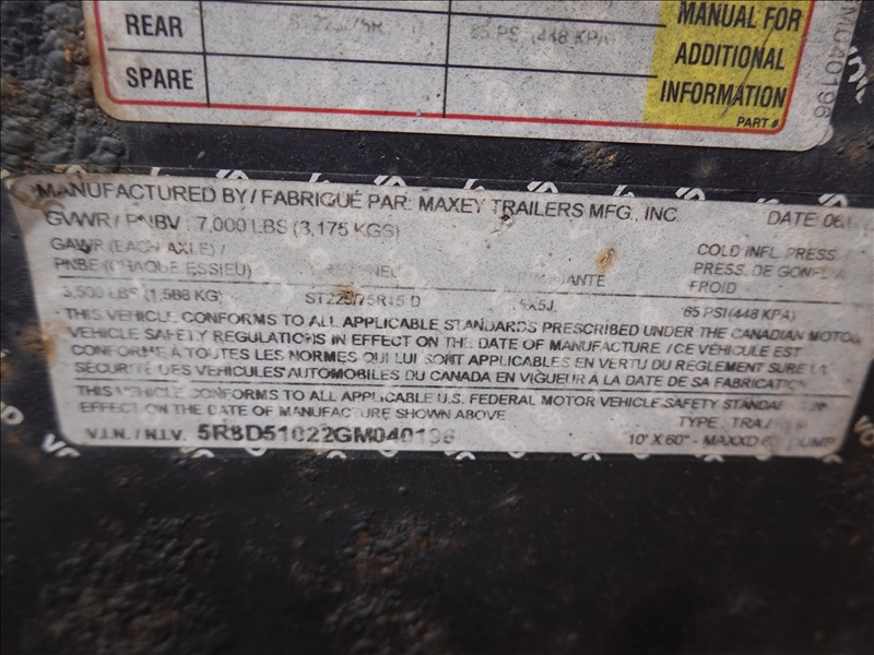 T/A, 10' X 60" DUMP TRAILER, SPRING SUSPENSION, TARP SYSTEM, RAMPS, ELECT BRAKES, 225/75R15