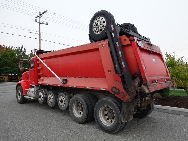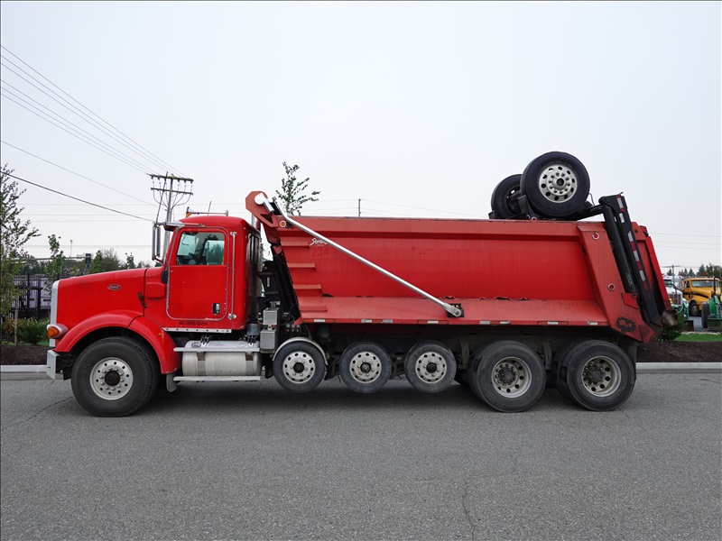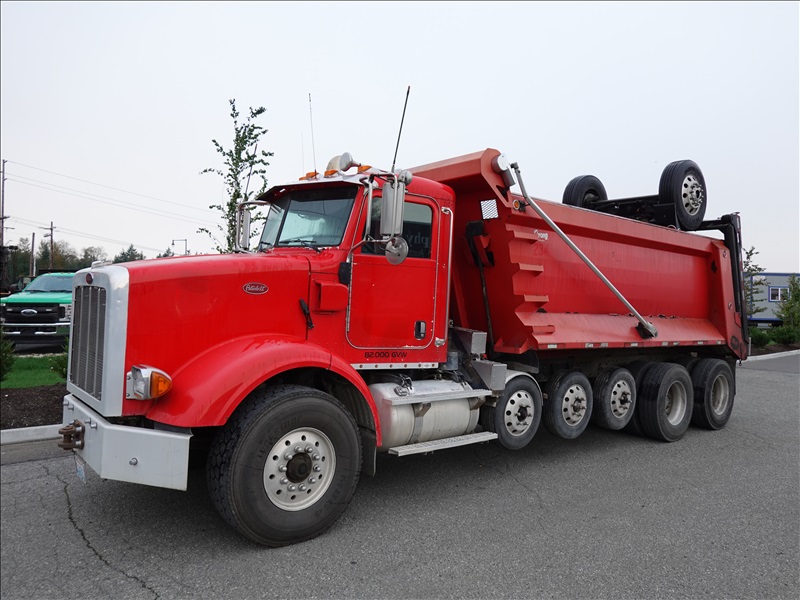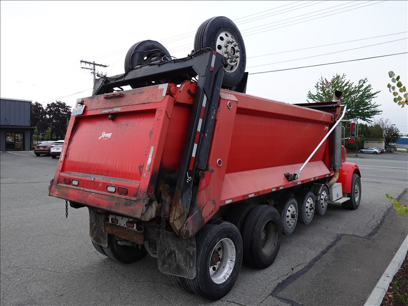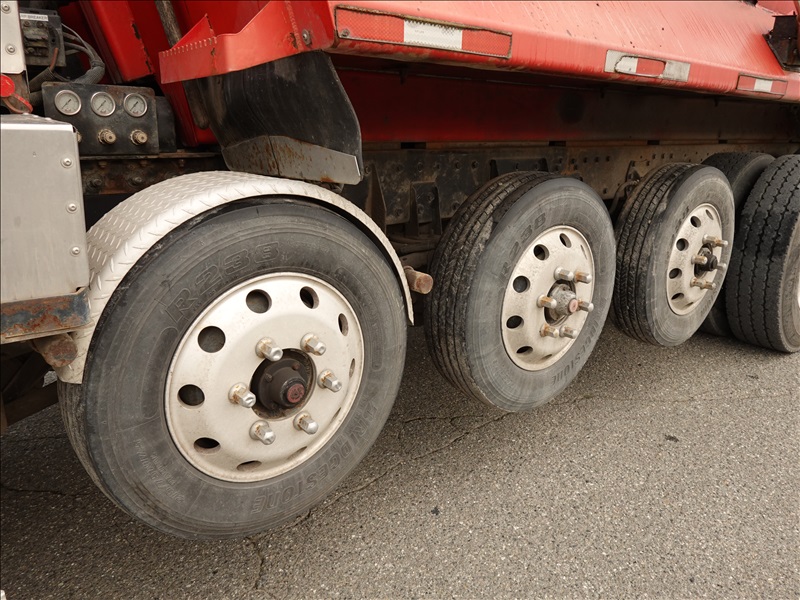 SUPER SOLO DUMP TRUCK, 20' STEEL BOX, TARP SYSTEM, AIR SUSPENSION, 280" W/B, 12,000 LB FRONT, 40,000 LB REARS, (3) DROP AXLES, TAG/A, A/B