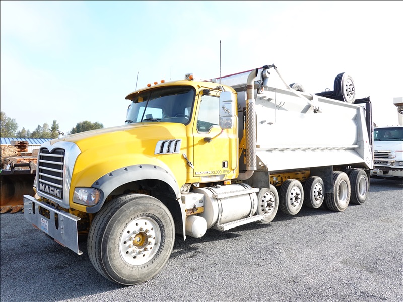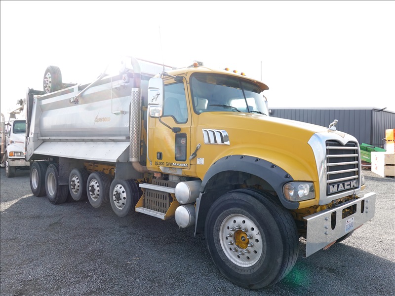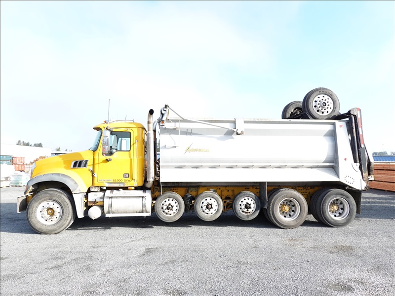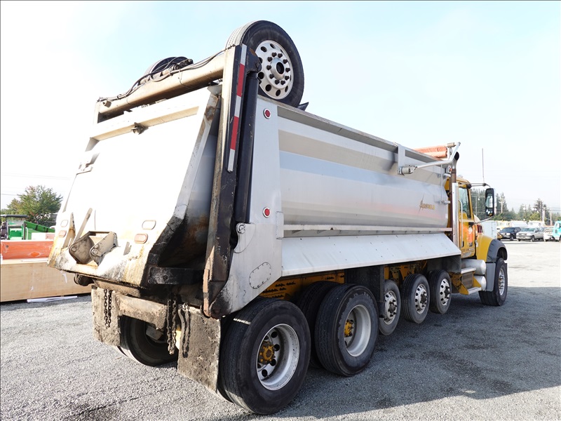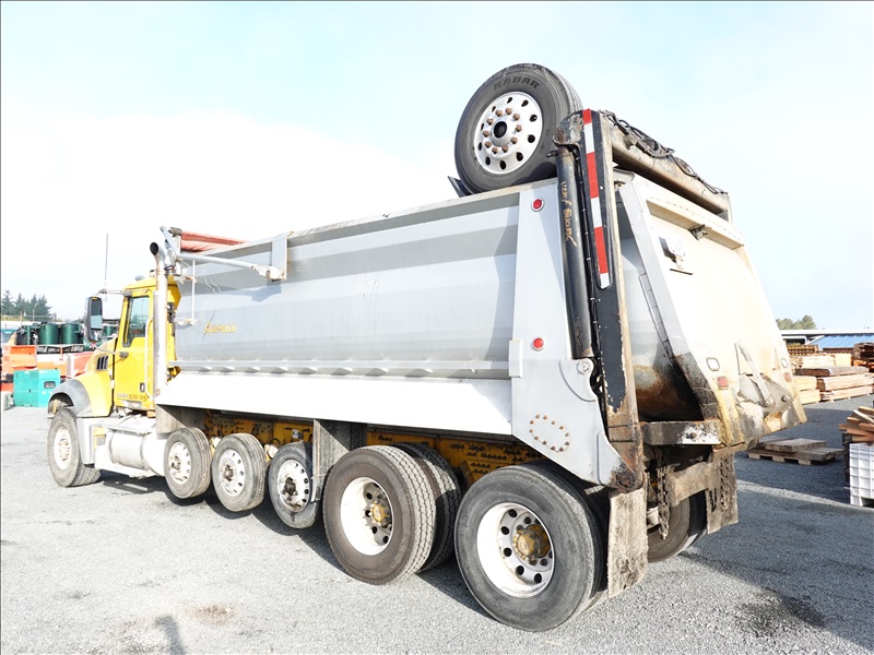 SUPER SOLO DUMP TRUCK, 20' STEEL BOX, TARP SYSTEM, 485 HP MP8, 8LL SPD, HAULMAXX SUSPENSION, 290" W/B, 18,000 LB FRONT, 46,000 LB REARS, (3) DROP AXLES, TAG/A, A/B
