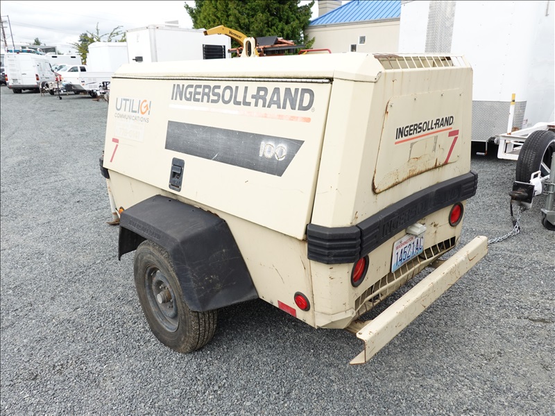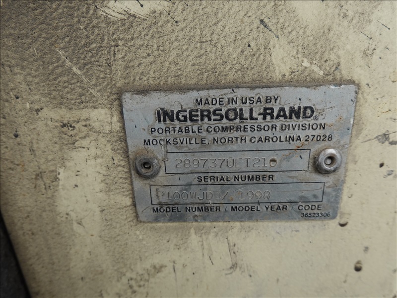 S/A, 100 PSI TRAILER MOUNTED AIR COMPRESSOR, SPRING SUSPENSION, JOHN DEERE 3 CYL DIESEL, HOUR METER: N/A
