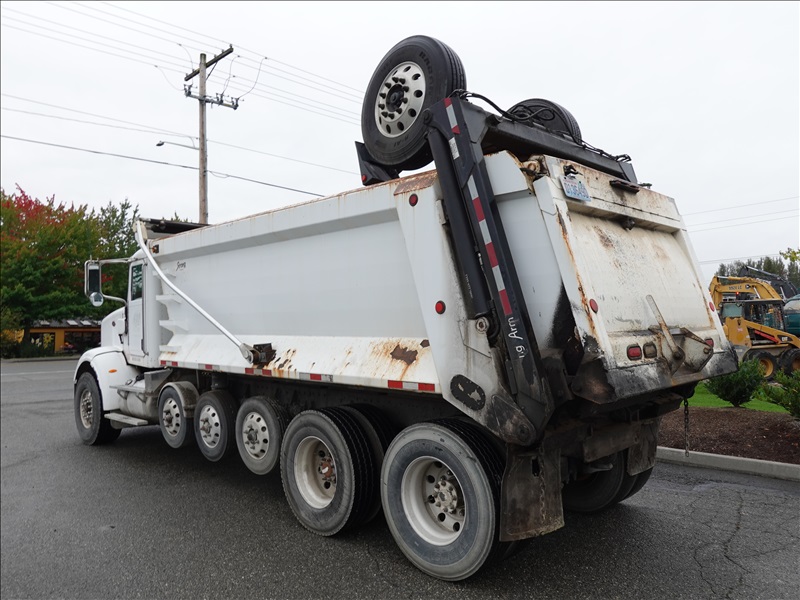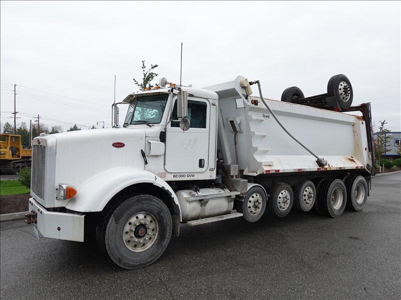 SUPER SOLO, DUMP TRUCK, 20' STEEL BOX, TARP SYSTEM, CAT C13, 8LL SPD, AIR SUSPENSION, 278" W/B, 12,000 LB FRONT, 40,000 LB REARS, (3) DROP AXLES, TAG/A, A/B