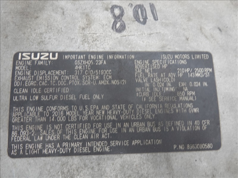 16; FLATBED DUMP, 8' STATIONARY W/RAMP, 8' DUMP, 215 HP ISUZU I4, AUTO