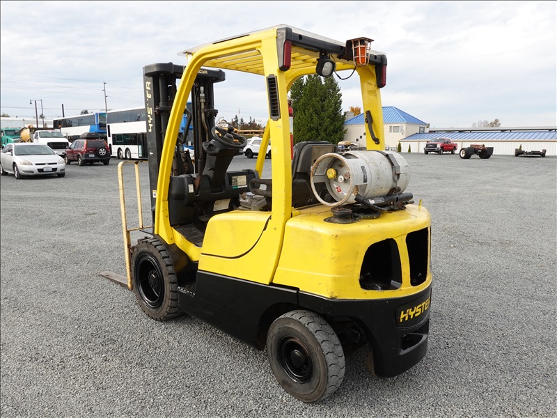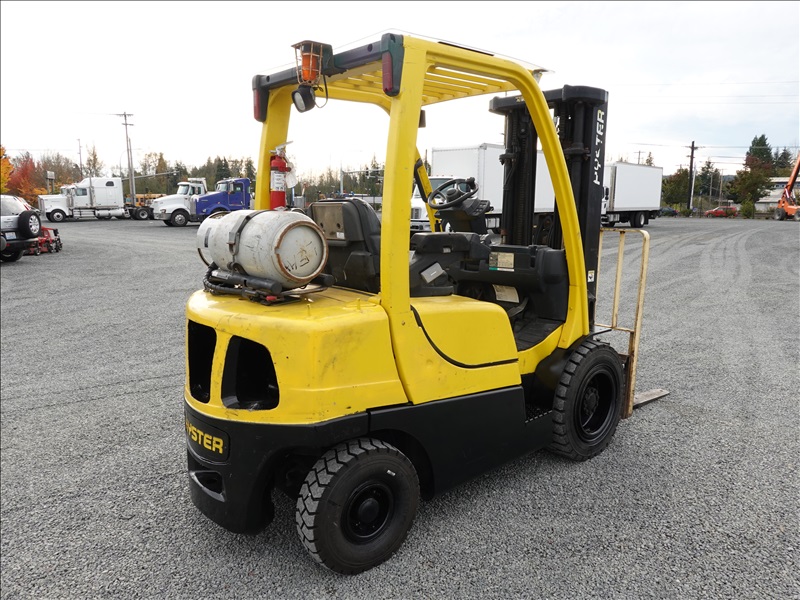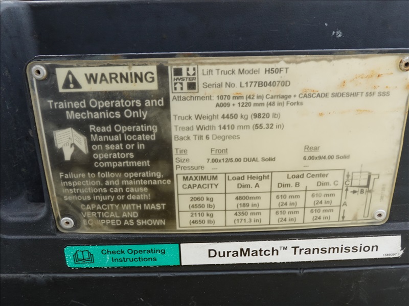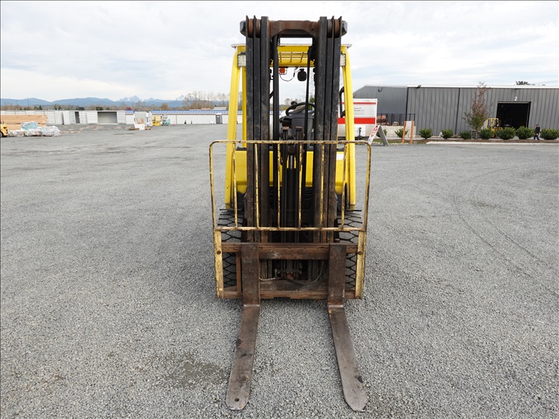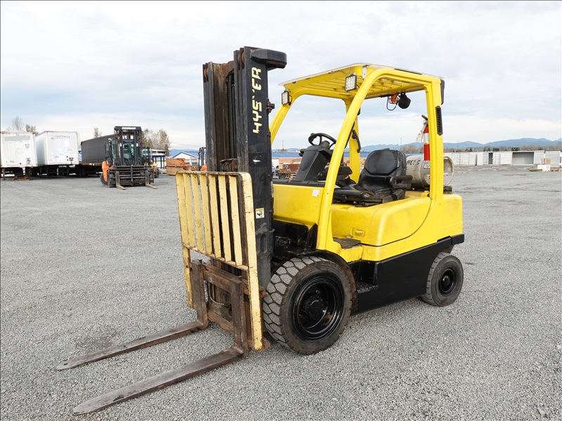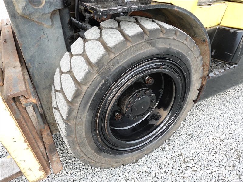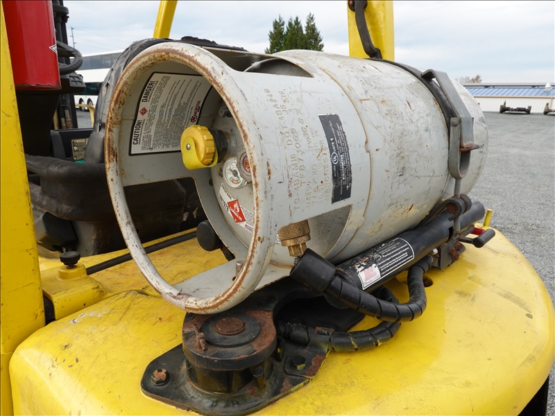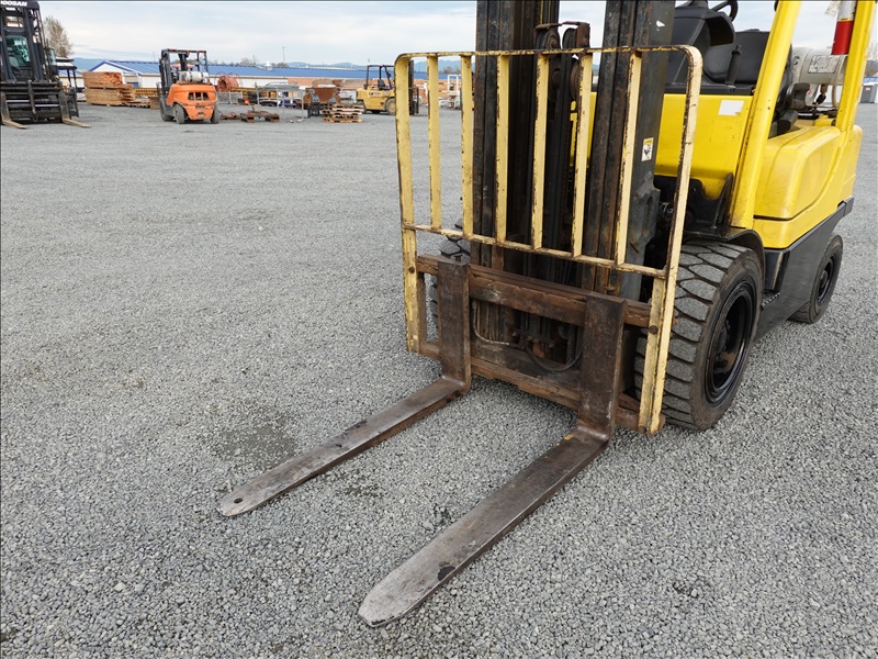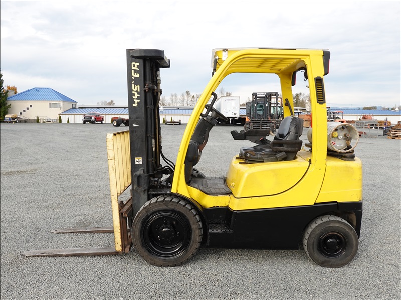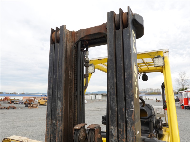 4,550 SOLID TIRE FORKLIFT, 189" FORK HEIGHT, 3-STAGE MAST, SIDE SHIFT, 4 CYL LPG