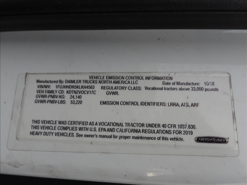 T/A, SLEEPER, TRACTOR, 505 HP DETROIT DD15, AUTO, AIR SUSPENSION, 230" W/B, 13,220 LB FRONT, 40,000 LB REARS, SLIDER, DOUBLE LOCKERS, A/B (CEL, ABS, TRACTION CONTROL LIGHT IS ON, COOLANT LEAK)