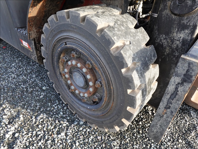8,700 SOLID TIRE FORKLIFT, 167" FORK HEIGHT, 2-STAGE MAST, 6 CYL LPG
