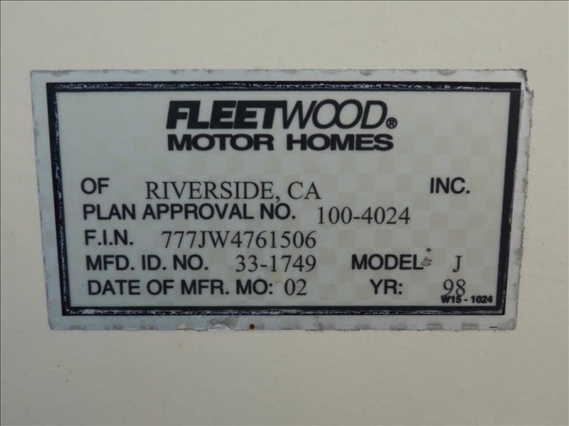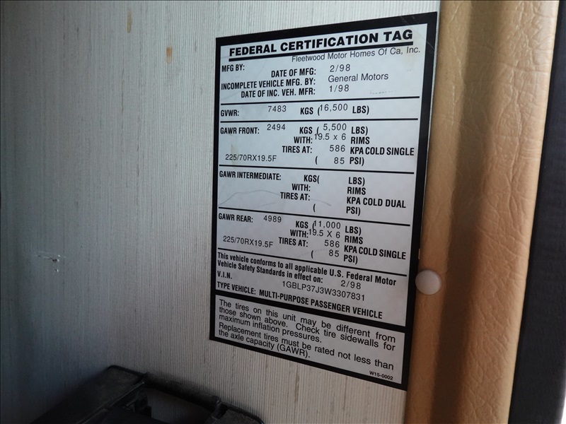 34' MOTORHOME, CHEV 7.4L V8, AUTO, A/C UNIT, AWNING, A/B, 225/70R19.5