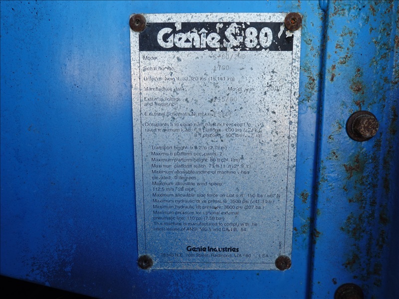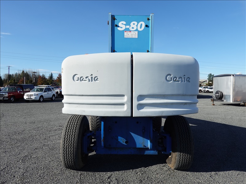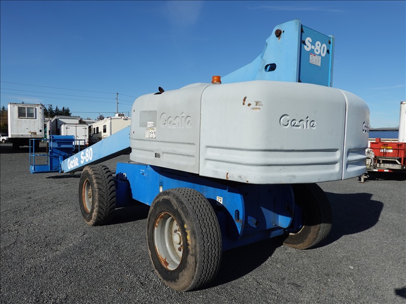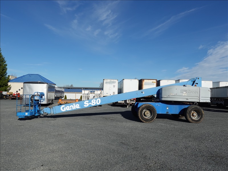 2WD TELESCOPIC BOOM LIFT, 80' PLATFORM HEIGHT, 71' HORIZONTAL REACH, 500 LB CAPACITY, A/C RECEPTACLE AT PLATFORM, FORD 4 CYL LPG