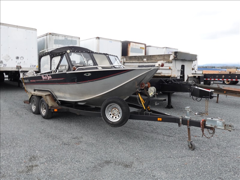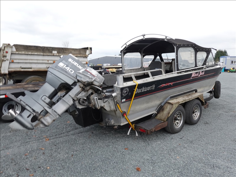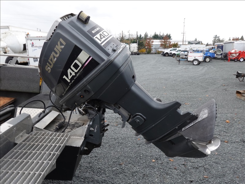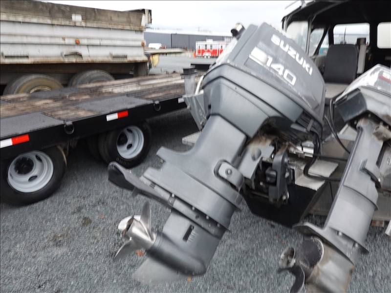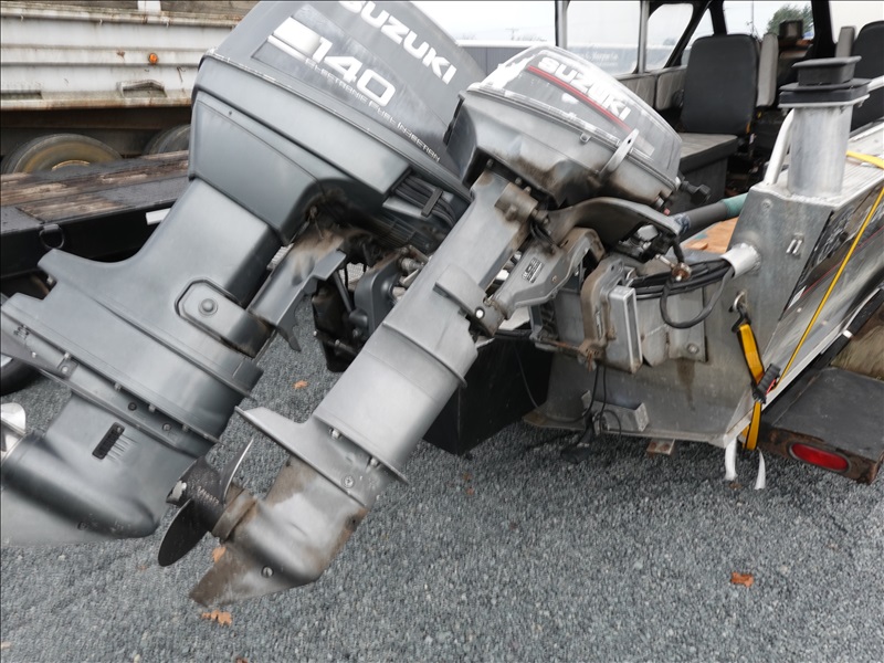 19' BOAT, 140 HP SUZUKI OUTBOARD, CONSOLE W/STANDARD HORIZON GPS, 9.9 HP SUZUKI KICKER MOTOR W/1997 ARMA T/A , APPROX 21' STEEL BOAT TRAILER, TORSION SUSPENSION, SURGE BRAKES, 205/75R14 TRAILER S/N: 4A1DT2110VW001132
