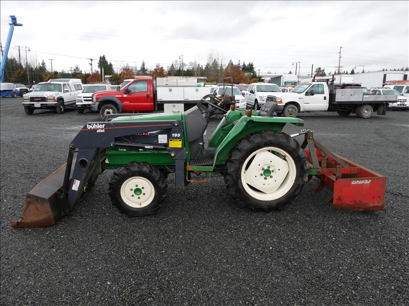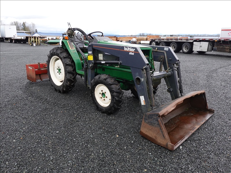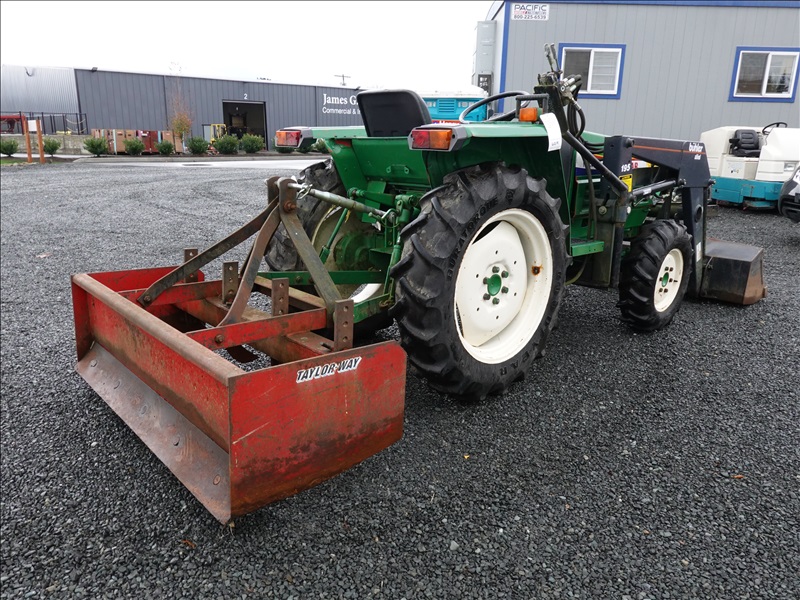 MFWD TRACTOR, 3 CYL DIESEL, AUTO, LOADER BUCKET, PTO, 3-POINT HITCH, 60" BOX SCRAPER ATTACHMENT (CONSIGNOR DISCLOSURE: COOLANT LEAK, RADIATOR NEEDS REPAIR)