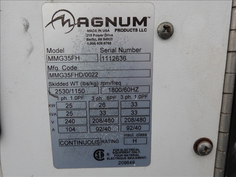S/A, 33 KVA TRAILER MOUNTED GENERATOR, JOHN DEERE 4 CYL DIESEL, 208/240/480V, SINGLE & 3 PHASE, SURGE BRAKES