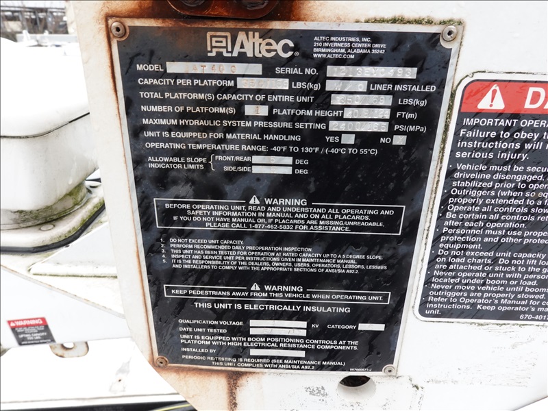 BUCKET TRUCK, FORD 6.8L V8, AUTO, ALTEC AT400 LIFT (BUYER MUST OBTAIN A CERTIFIED WEIGHT SLIP TO LICENSE VEHICLE, ACCIDENT DAMAGE)