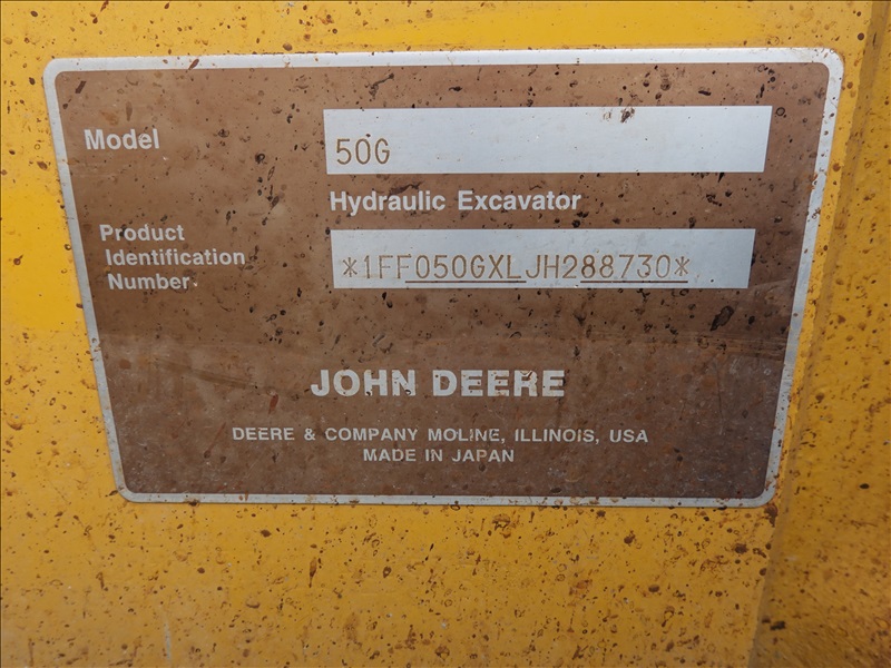2018 JOHN DEERE 50G MINI EXCAVATOR