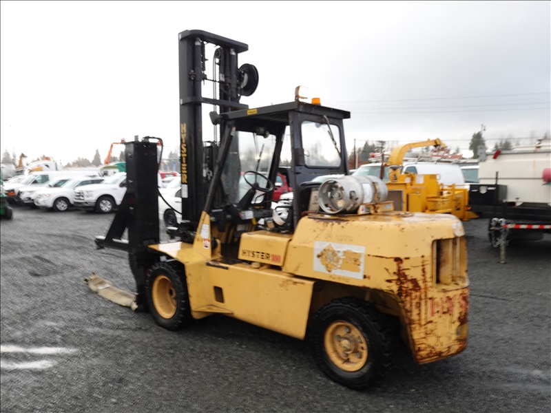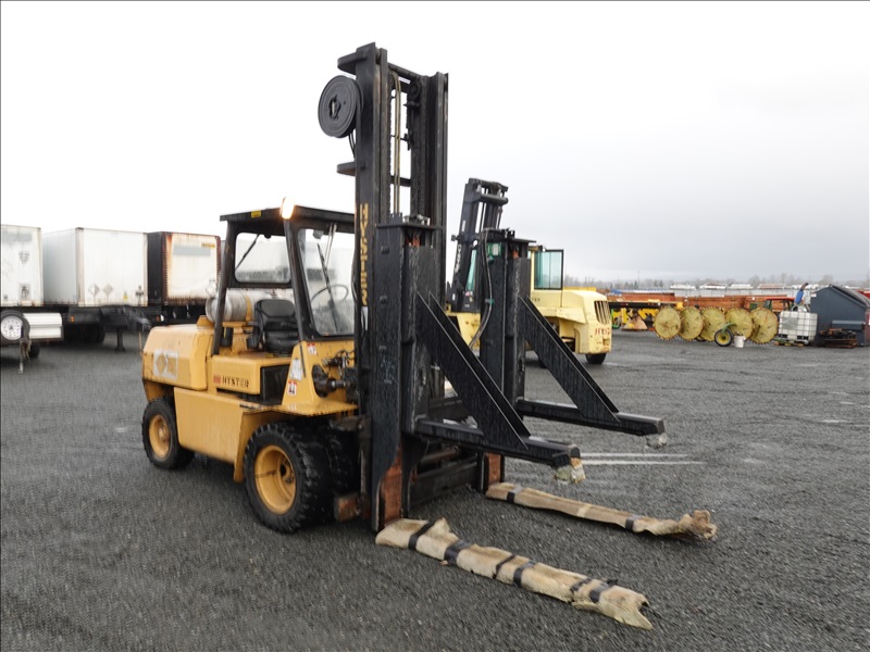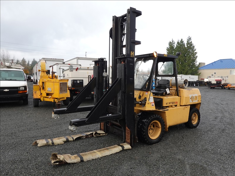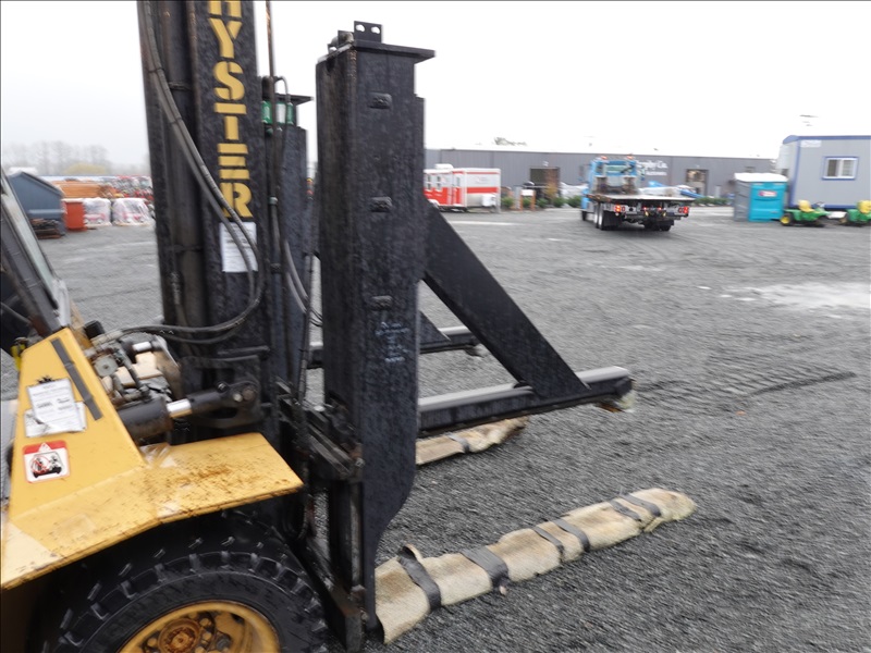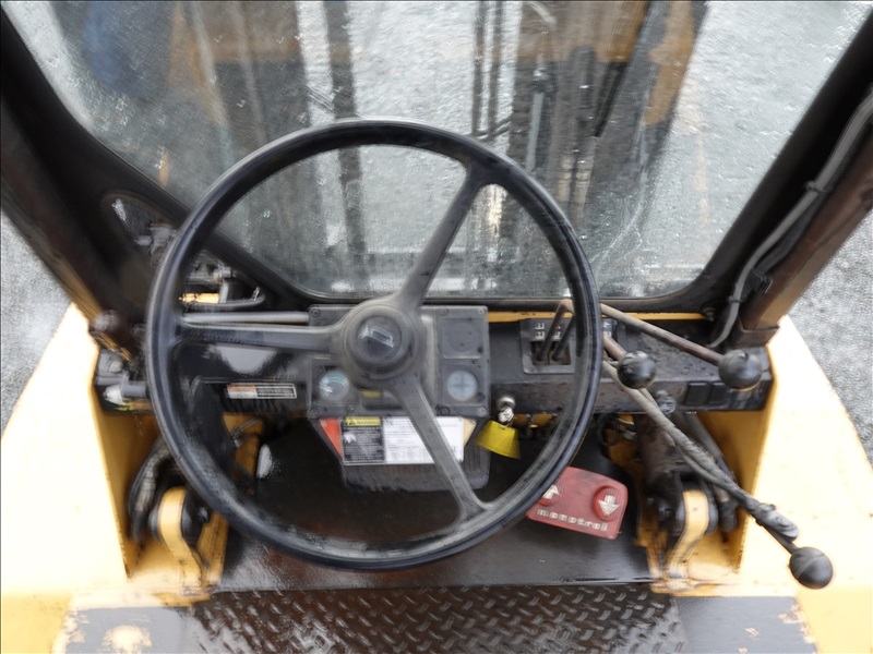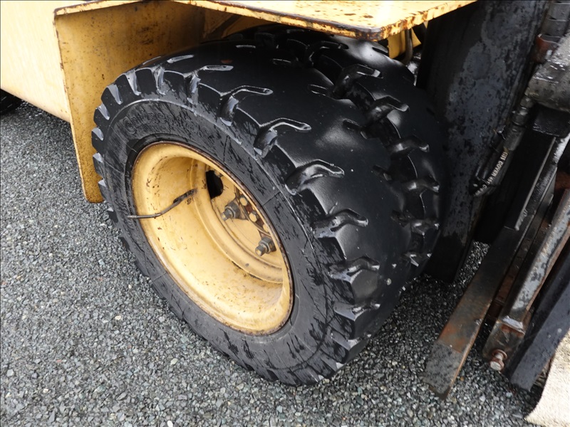 7,750 LB DUAL PNEUMATIC FORKLIFT, 159" FORK HEIGHT, 2-STAGE MAST, SIDE SHIFT, GREENFIELD PIPE CLAMP, 6 CYL LPG (CONSIGNOR DISCLOSURE: CONTROL FUNCTION ELECTRICAL ISSUES, NO PROPANE TANK)