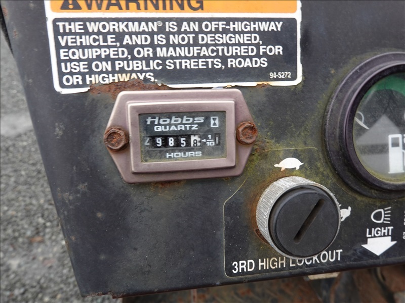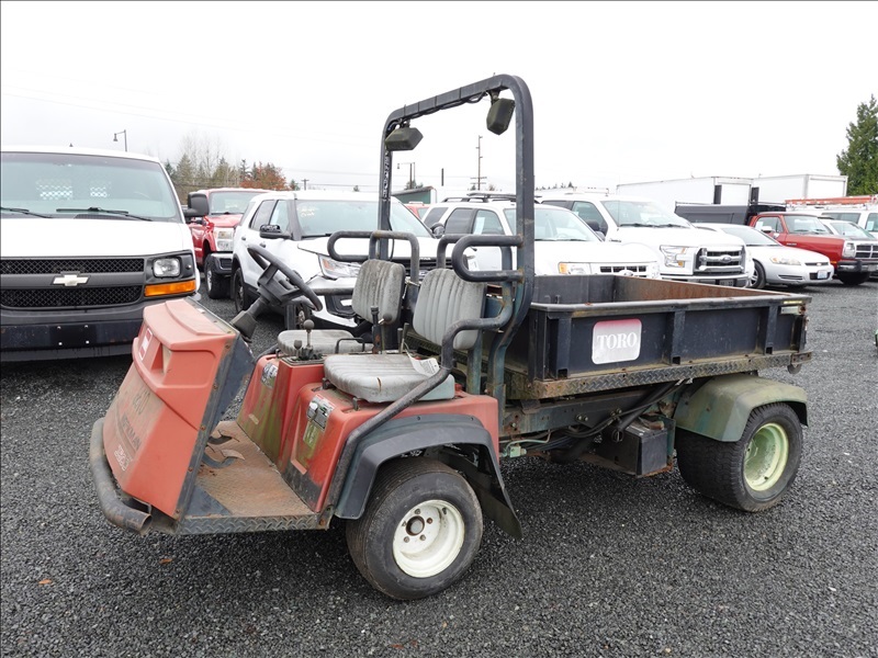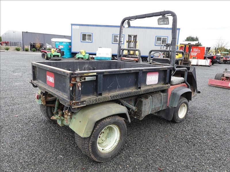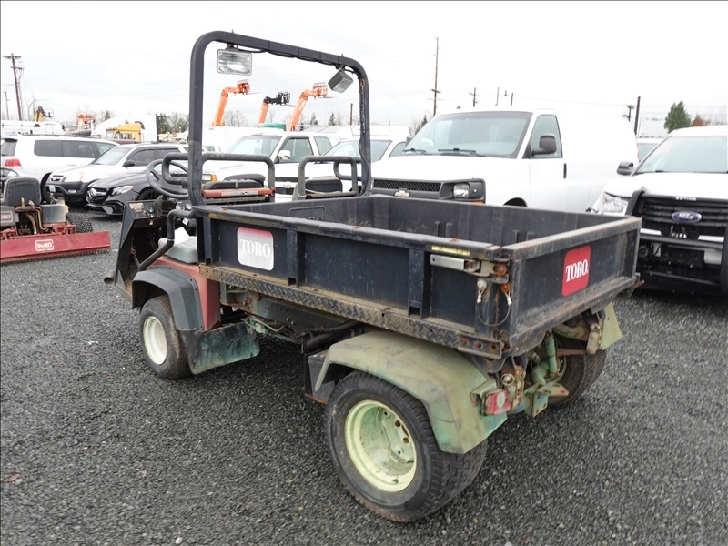 2WD UTILITY VEHICLE, MITSUBISHI 3 CYL GAS, 3 SPD, 2-RANGE, HYD DUMP BOX, AUX HYD (CITY DISCLOSURE: LEFT REAR WHEEL LOCKED UP)