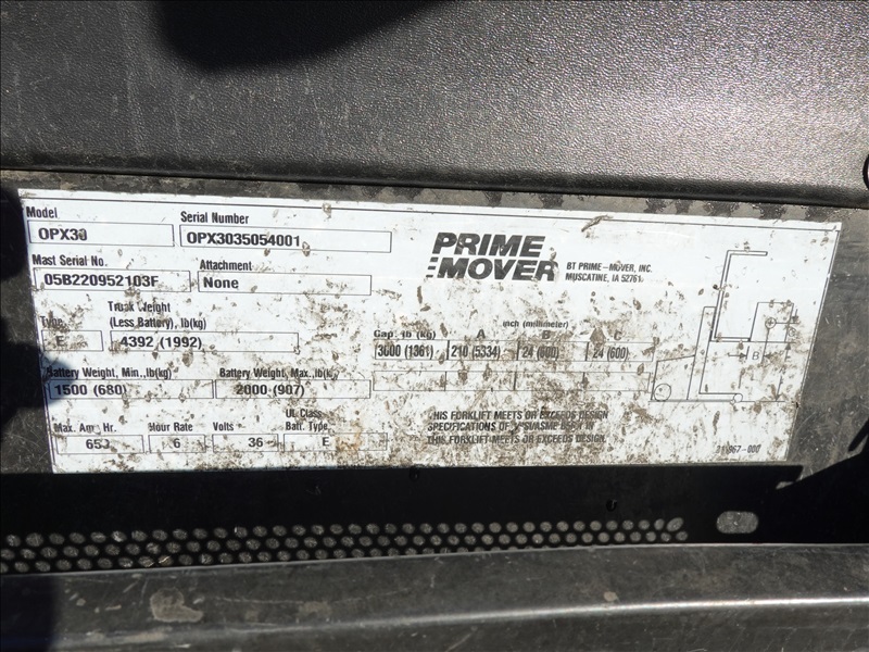 3,000 LB ORDER PICKER, 210" FORK HEIGHT, 3-STAGE MAST, 36V ELECTRIC (NO CHARGER, SOLENOID VALVE NEEDS REPAIR)
