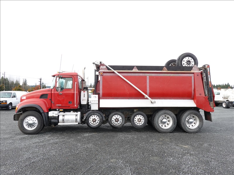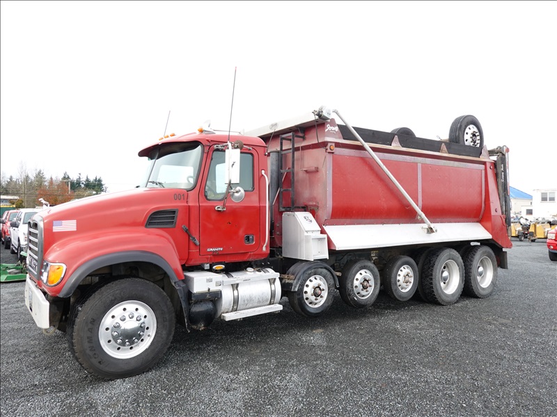 SUPER SOLO DUMP TRUCK, 427 HP AI-427, 13 SPD, STRONG INDUSTRIES 17' STEEL BOX, TARP SYSTEM, CAMELBACK SUSPENSION, 260" W/B, (3) DROP AXLES, HOUR METER READS: 25,682