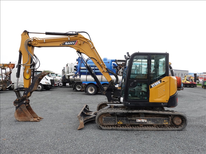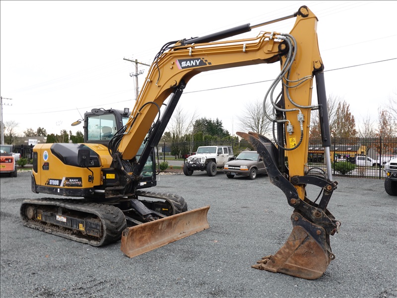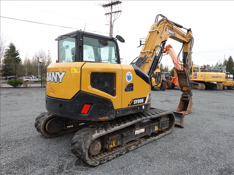 HYDRAULIC EXCAVATOR 73 HP YANMAR 4TNV98CT, SWING BOOM, 6'9" STICK, PIN GRABBER, 14" BUCKET, HYD THUMB, AUX HYD, BLADE, RUBBER TRACKS, A/C CAB