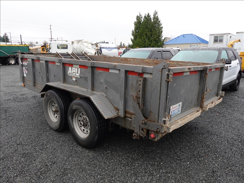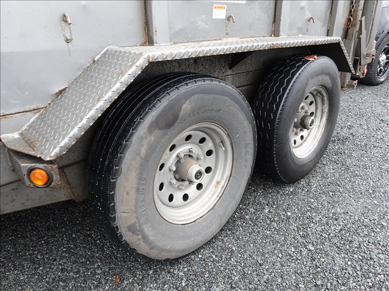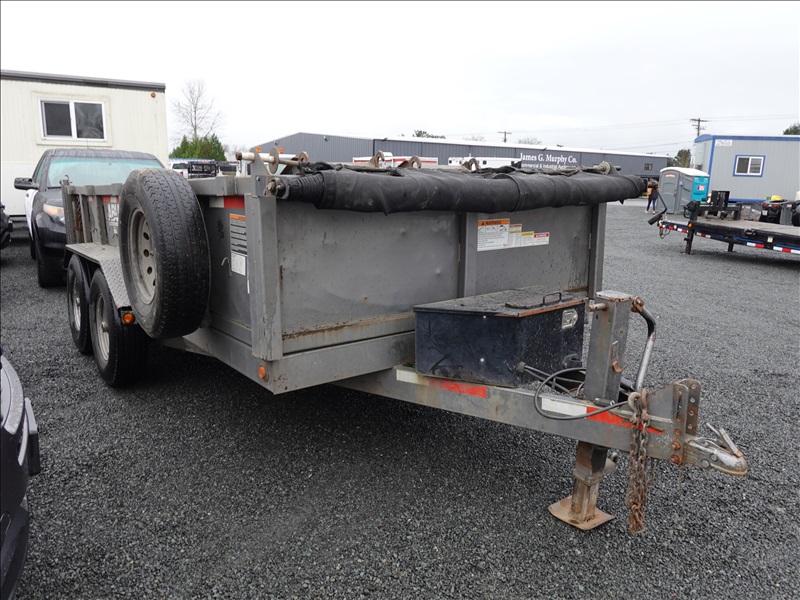T/A, 14' X 7' DUMP TRAILER, SPRING SUSPENSION, TARP, RAMPS, ELECT BRAKES, 235/85R16