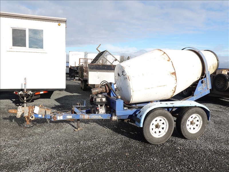 T/A, TRAILER MOUNTED CEMENT MIXER, SPRING SUSPENSION, HONDA GX 390 GAS, SURGE BRAKES