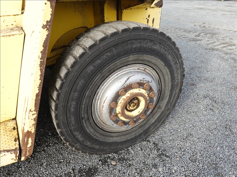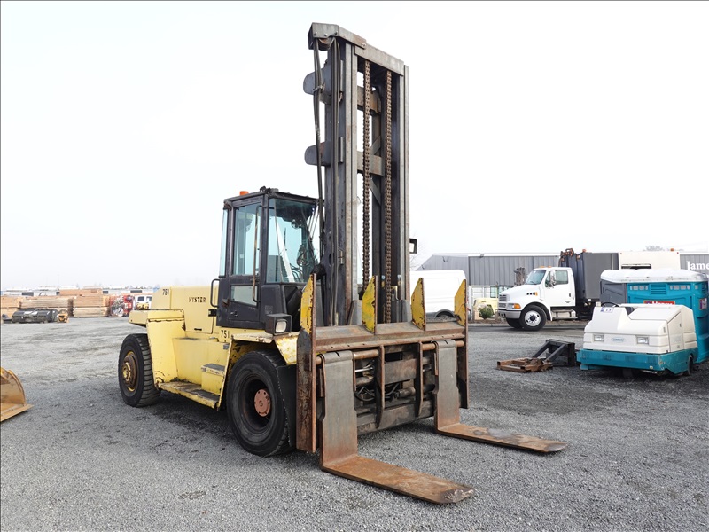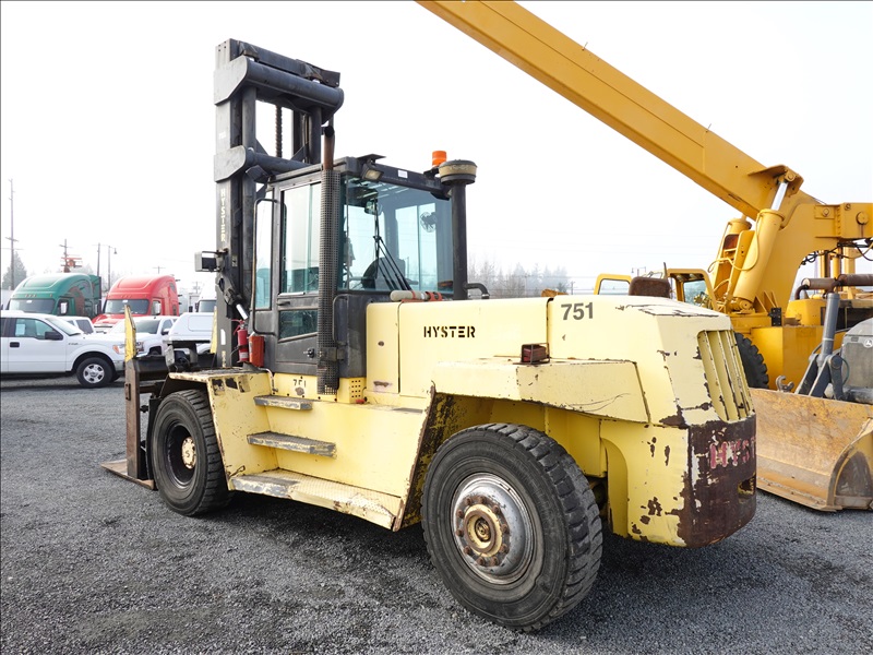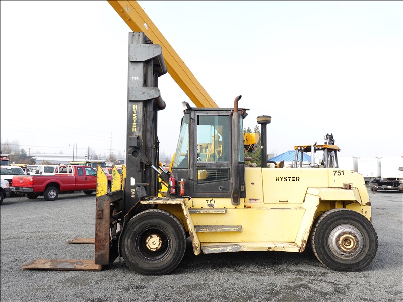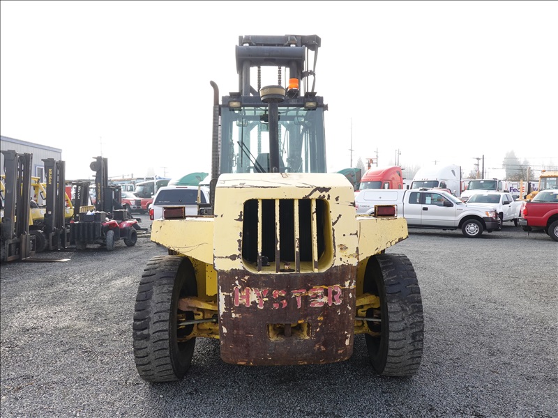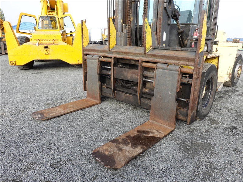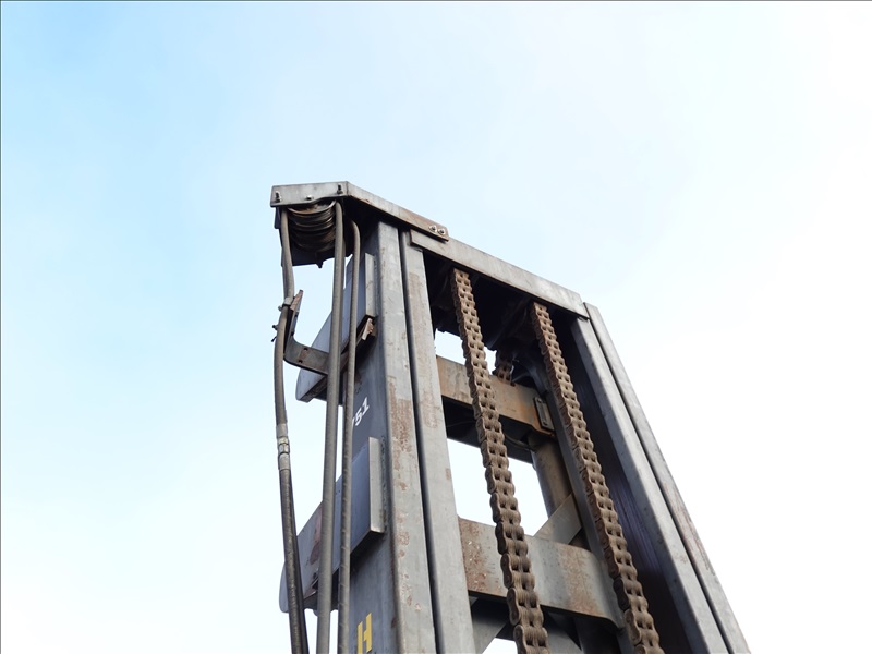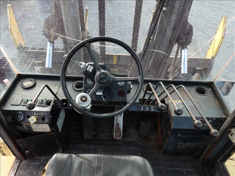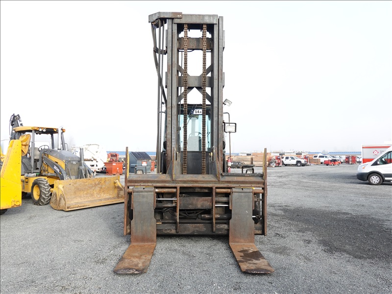 25,200 LB DUAL PNEUMATIC TIRE FORKLIFT, 212" FORK HEIGHT, 2-STAGE MAST, SIDE SHIFT, FORK POSITIONERS, LUMBER FORKS, FIRE SUPPRESSION SYSTEM, 6 CYL DIESEL, CAB (MISSING INNER DUAL TIRES)