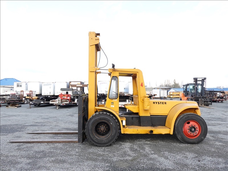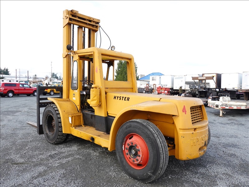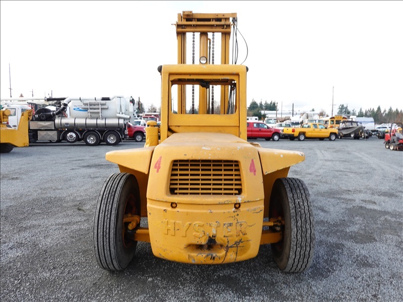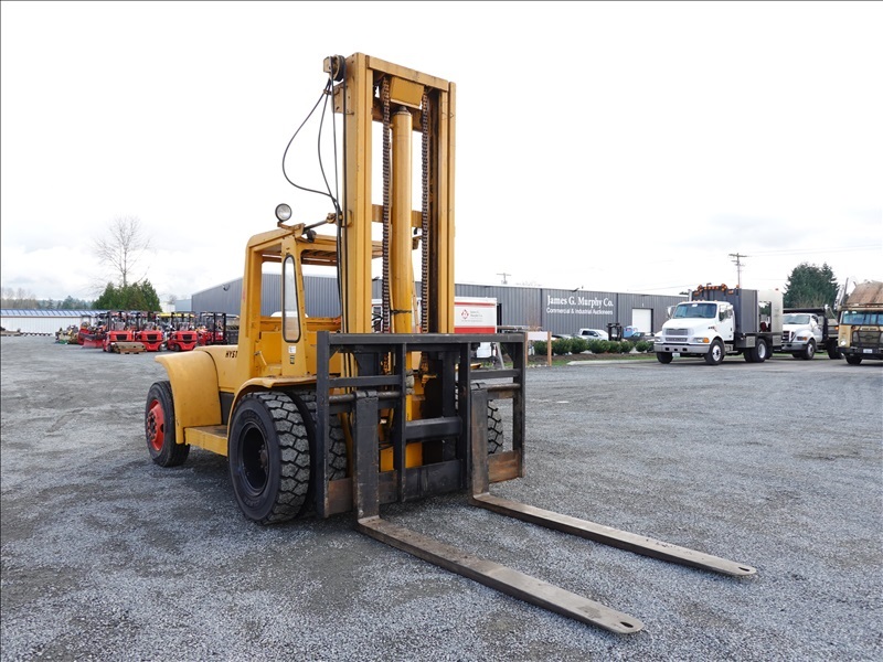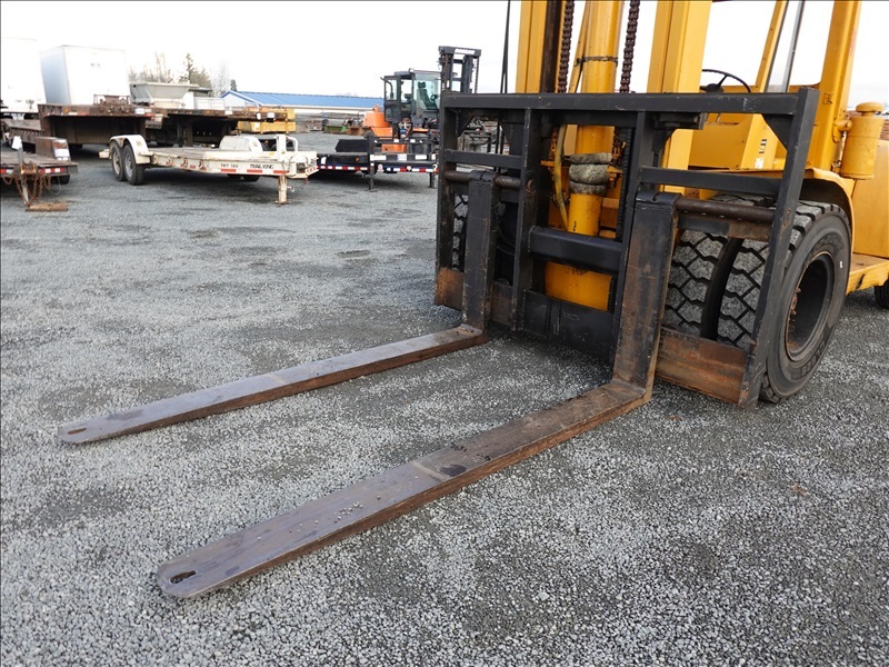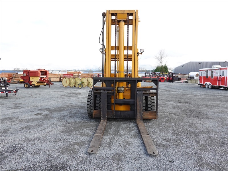 DUAL PNEUMATIC TIRE FORKLIFT, 182" FORK HEIGHT, 2-STAGE MAST, 8' FORKS, 6 CYL GAS, CANOPY